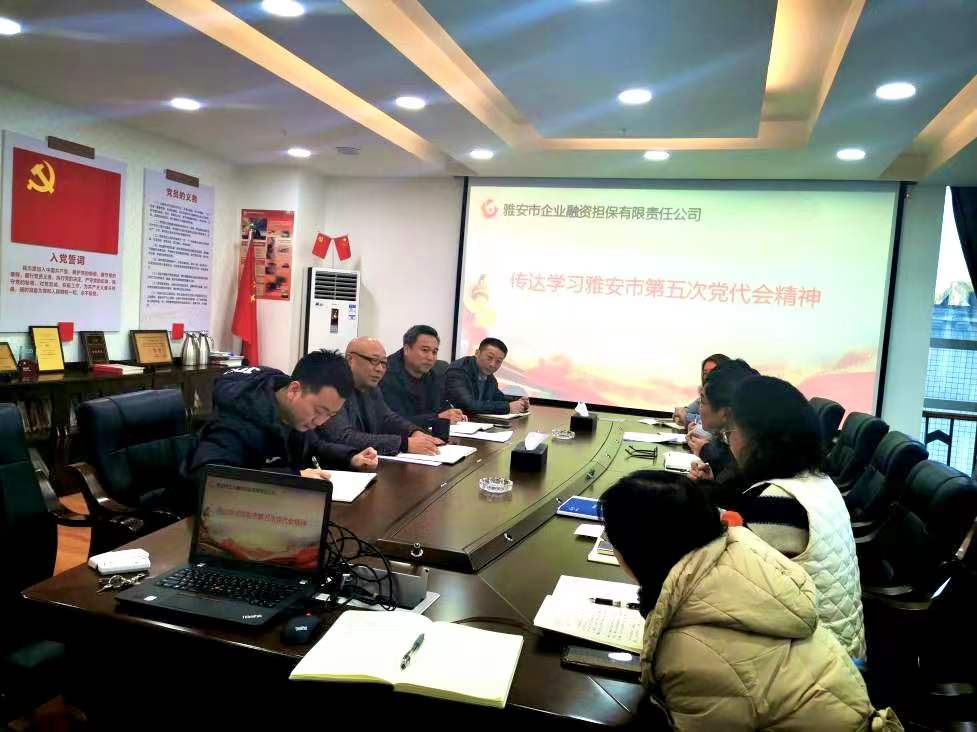 12月24日,市擔保公司召開支委(擴大)會,專題傳達學習雅安市第五次黨代會精神,并就貫徹落實情況進行安排部署。市擔保公司黨支部書記、董事長尹福健主持會議。