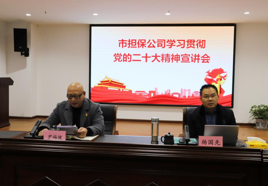 為深入學習貫徹黨的二十大精神,12月1日,市擔保公司邀請市委黨校副校長楊國先作黨的二十大精神專題宣講。市擔保公司黨支部書記、董事長尹福健主持會議。